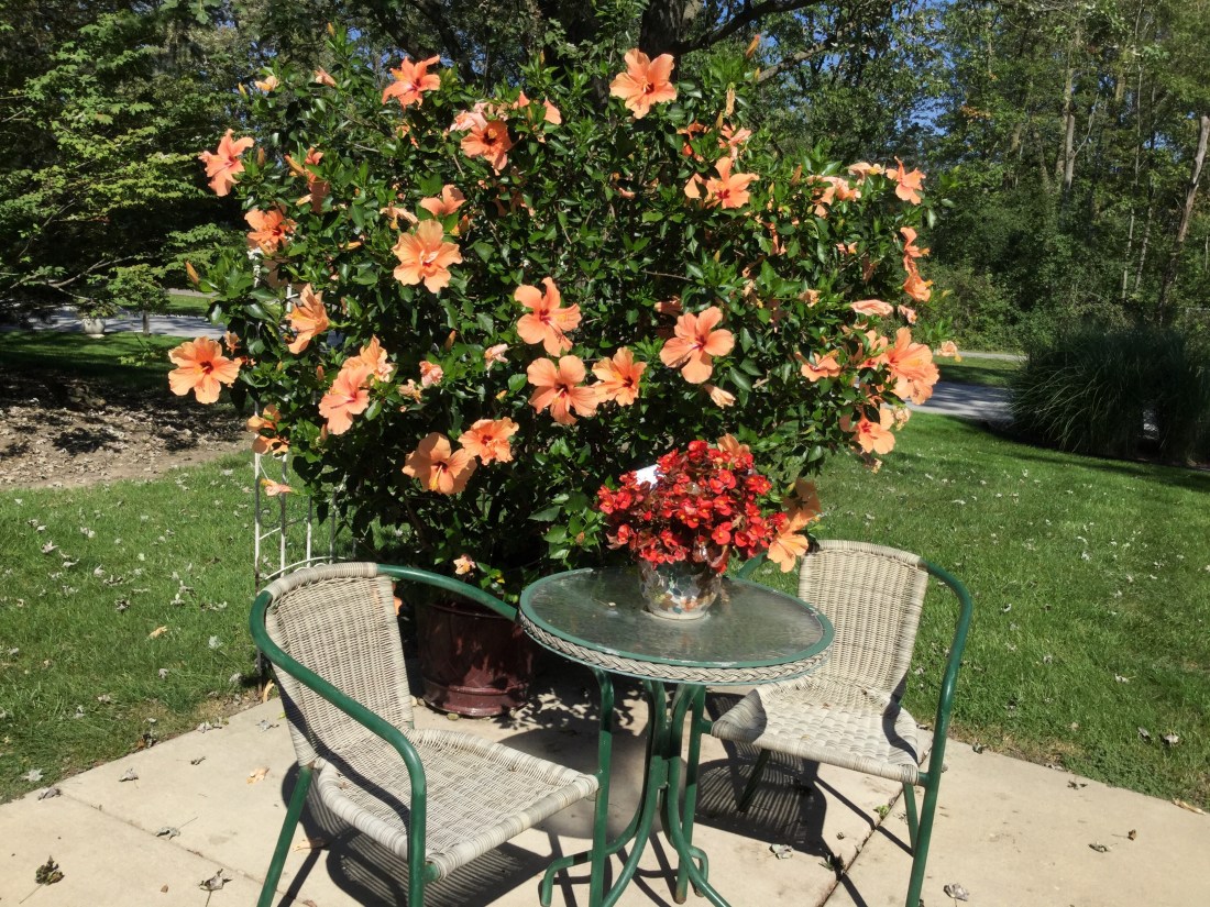 Regardless of whether you are into landscape design, interior design or outfit design, you start by creating a focus. To do this, you want to place something in a spot that draws the eye. This also means that the surrounding environment will be minimized in comparison. From my introductory blog, you know that I was a teacher, a school psychologist, and a Board Certified Behavior Analyst but I also have a degree in horticulture and enjoy landscape design. The pictures above show the focus I created when you walk out my front door. Your eyes are drawn to the color of the 6 foot x 4 foot hibiscus plant. The hardscape plus the monochromatic green coloring of the rest of the environment help to make the the grouping into a “focus”.